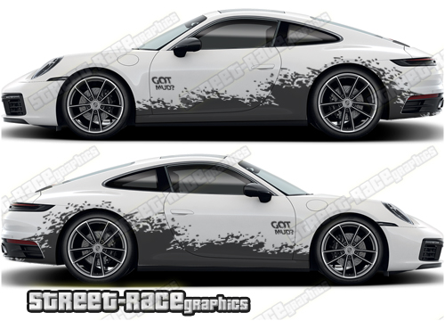 Porsche 911 large side graphics. A perfect addition to your track-day car. These graphics will also fit other similar-sized 911 variants such as the Porsche 992, 991, 997 and 916.