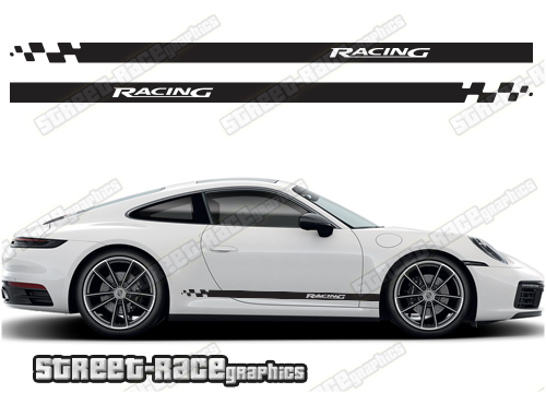 Porsche 911 lower side racing stripes. These graphics will also fit other similar-sized 911 variants such as the Porsche 992, 991, 997 and 916.