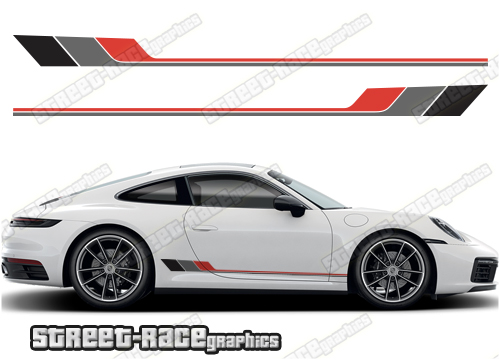 Porsche 911 lower side racing stripes. These graphics will also fit other similar-sized 911 variants such as the Porsche 992, 991, 997 and 916.