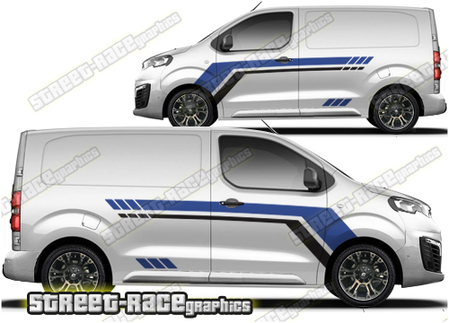 Toyota ProAce large side graphics. Great for a camper or race van conversion. They are a universal fit to suit all Toyota ProAce vans and facelift variants from MK2 onwards. There are no cutouts for the door handles, wheel arches or door lines, these will require trimming during fitting. Shown on the short wheelbase (SWB) Toyota ProAce van, but we can also make them to fit the long wheelbase (LWB).