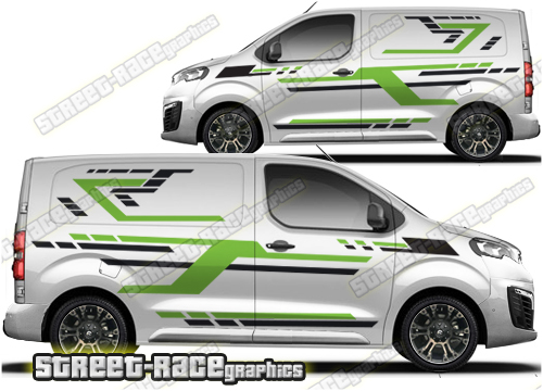 Toyota ProAce large side graphics. Great for a camper or race van conversion. They are a universal fit to suit all Toyota ProAce vans and facelift variants from MK2 onwards. There are no cutouts for the door handles, wheel arches or door lines, these will require trimming during fitting. Shown on the short wheelbase (SWB) Toyota ProAce van, but we can also make them to fit the long wheelbase (LWB).