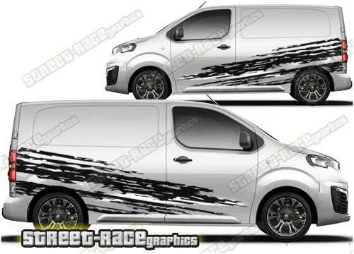 Toyota ProAce large side graphics. Great for a camper or race van conversion. They are a universal fit to suit all Toyota ProAce vans and facelift variants from MK2 onwards. There are no cutouts for the door handles, wheel arches or door lines, these will require trimming during fitting. Shown on the short wheelbase (SWB) Toyota ProAce van, but we can also make them to fit the long wheelbase (LWB).