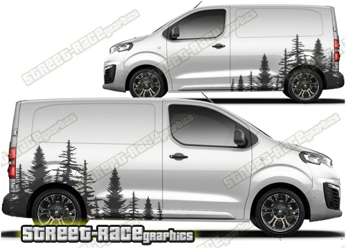 Toyota ProAce large side graphics. Great for a camper or race van conversion. They are a universal fit to suit all Toyota ProAce vans and facelift variants from MK2 onwards. There are no cutouts for the door handles, wheel arches or door lines, these will require trimming during fitting. Shown on the short wheelbase (SWB) Toyota ProAce van, but we can also make them to fit the long wheelbase (LWB).