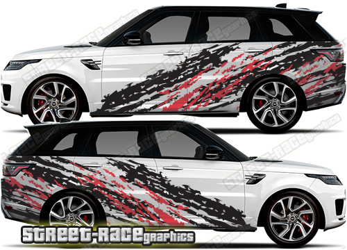 Range Rover graphics. They are shown on the fifth generation Range Rover (L460). The decals are universal fit: they are not pre-cut for any specific Range Rover 5 variations. They do not have any door handle cutouts, wheel arch or door line splits. These will require trimming during fitting.