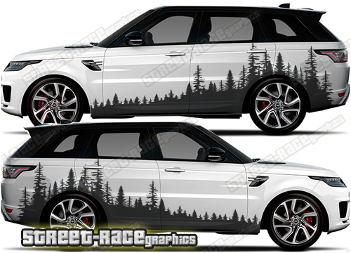 Range Rover graphics. They are shown on the fifth generation Range Rover (L460). The decals are universal fit: they are not pre-cut for any specific Range Rover 5 variations. They do not have any door handle cutouts, wheel arch or door line splits. These will require trimming during fitting.