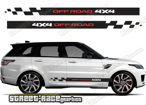 Range Rover racing stripes. They are shown on the fifth generation Range Rover (L460). The decals are universal fit: they are not pre-cut for any specific Range Rover 5 variations. They do not have any cutouts for the wheel arches or door line splits. These will require trimming during fitting.