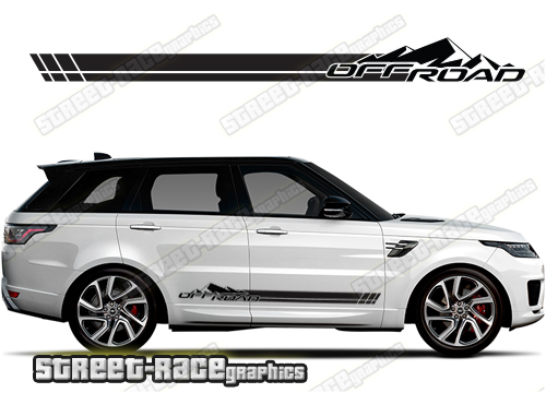 Range Rover racing stripes. They are shown on the fifth generation Range Rover (L460). The decals are universal fit: they are not pre-cut for any specific Range Rover 5 variations. They do not have any cutouts for the wheel arches or door line splits. These will require trimming during fitting.