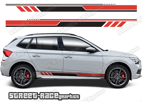 Seat Arona racing stripes. They are shown on the first generation Arona but they can be trimmed to fit all later versions and facelift variants. The decals are not pre-cut for any specific Seat Arona version; they do not have any door handle cutouts, wheel arch or door line splits. These will require trimming during fitting. Vinyl will not stick to unpainted textured plastics.