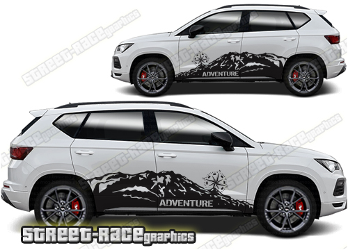 Skoda Karoq graphics. They are shown on the first generation Karoq but they can be trimmed to fit all later versions and facelift variants. The decals are not pre-cut for any specific Skoda Karoq version; they do not have any door handle cutouts, wheel arch or door line splits. These will require trimming during fitting. Vinyl will not stick to unpainted textured plastics.