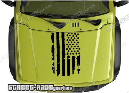 Suzuki Jimny bonnet / hood graphics. They are shown on the Fourth Generation Suzuki Jimny but they will also fit the MK2 and MK3 versions. The decals are longer than needed – you just trim off the excess at the bonnet edges