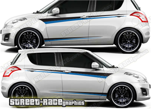 Suzuki Swift large side racing style graphics, to suit all Suzuki Swift cars and facelift variants.