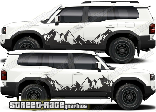 Toyota Land Cruiser 250 graphics. The decals are not pre-cut for the wheel arch shape, so they can be fitted with or without after-market flares.