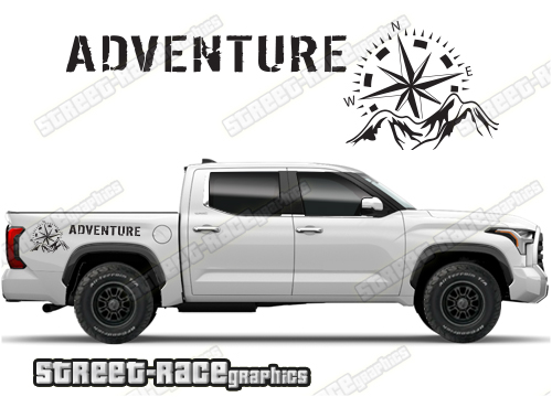 Toyota Tundra stickers. They are shown on the 4th generation dual cab Toyota Tundra, but they can be made / trimmed fit all earlier versions and facelift variants. The decals do not have any door handle cutouts, wheel arch or door line splits. These will require trimming during fitting. Vinyl will not stick to unpainted textured plastics.