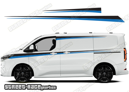 Ford Transit Custom MK2 graphics (2024 onwards). These graphics are shown on a SWB Transit Custom, but we can make them longer to fit the LWB Custom – choose the length required from the menu.
