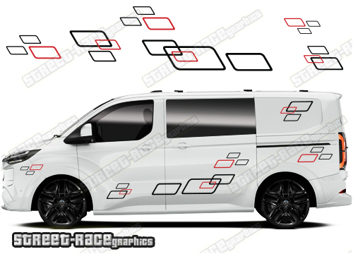 Ford Transit Custom MK2 graphics (2024 onwards). These graphics are shown on a SWB Transit Custom, but we can make them longer to fit the LWB Custom – choose the length required from the menu.