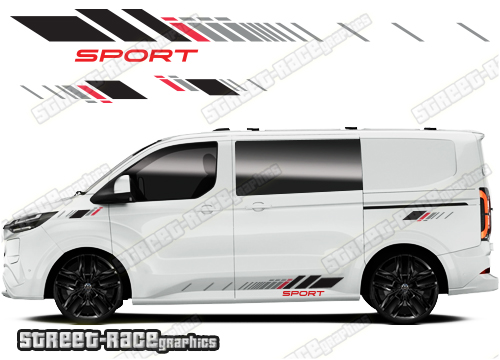 Ford Transit Custom MK2 graphics (2024 onwards). These graphics are shown on a SWB Transit Custom, but we can make them longer to fit the LWB Custom – choose the length required from the menu.