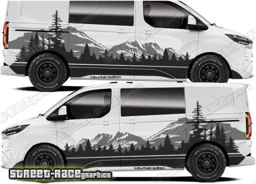 Ford Transit Custom MK2 large graphics (to suit the MK2 Custom van 2024 onwards). These graphics are shown on a SWB Transit Custom, but we can make them longer to fit the LWB Custom – choose the length required from the menu.