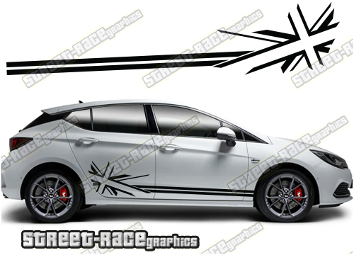 Vauxhall / Opel Astra racing stripes. They are a universal fit to suit all Vauxhall / Opel Astra cars and facelift variants. There are no cutouts for the wheel arches or door lines; these will require trimming during fitting.