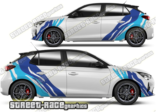 Vauxhall / Opel Corsa graphics. These large race-inspired decals are perfect for both street, rally and track-day cars. They are a universal fit to suit all Vauxhall / Opel Corsa cars and facelift variants from MK1 onwards. There are no cutouts for the door handles, wheel arches or door lines; these will require trimming during fitting.