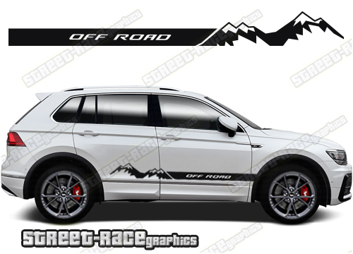 Volkswagen T-Cross racing stripes. They are shown on the first generation T-Cross but they can be trimmed to fit all later versions and facelift variants. The decals are not pre-cut for any specific Volkswagen T-Cross version; they do not have any door handle cutouts, wheel arch or door line splits. These will require trimming during fitting. Vinyl will not stick to unpainted textured plastics.