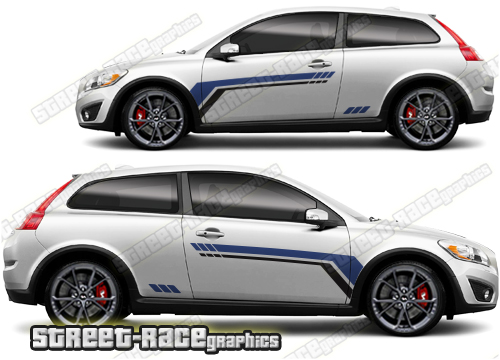 Volvo C30 large graphics. They are a universal fit to suit all Volvo C30 cars and facelift variants. There are no cutouts for the door handles, wheel arches or door lines; these will require trimming during fitting.
