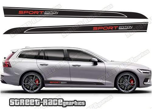 Volvo V90 racing stripes. They are a universal fit to suit all Volvo V90 estate / station wagon cars and facelift variants from MK1 onwards. There are no cutouts for the wheel arches or door lines; these will require trimming during fitting.