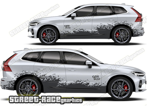 Volvo XC60 graphics. They are shown on the first generation XC60 but they can be trimmed to fit all later versions and facelift variants. The decals are not pre-cut for any specific Volvo XC60 version; they do not have any door handle cutouts, wheel arch or door line splits. These will require trimming during fitting. Vinyl will not stick to unpainted textured plastics.
