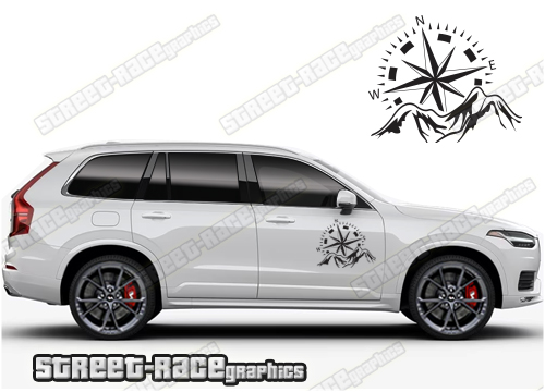 Volvo XC90 stickers. They are shown on the first generation XC90 but they can be trimmed to fit all later versions and facelift variants. The decals are not pre-cut for any specific Volvo XC90 version; they do not have any door handle cutouts, wheel arch or door line splits. These will require trimming during fitting. Vinyl will not stick to unpainted textured plastics.