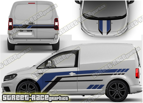 VW Caddy side racing stripes, with bonnet/bumper and rear door stripes.