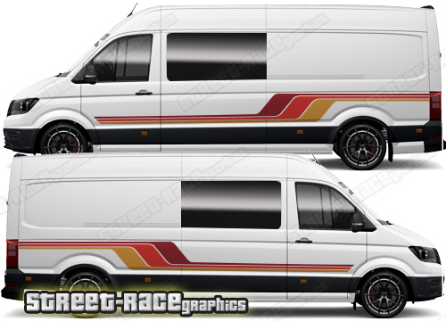 VW Crafter MK2 camper van retro graphics. These are ideal for giving your existing camper a new look or to finish off a new camper van conversion project. We offer these decals in a range of sizes to suit the different wheelbase versions of the Volkswagen Crafter.