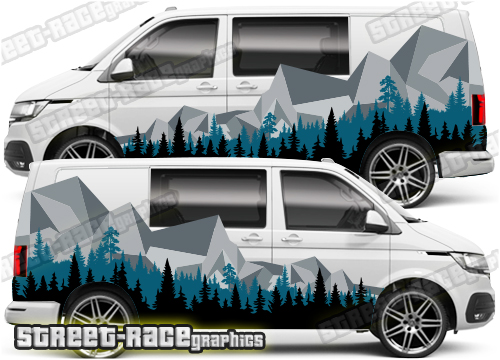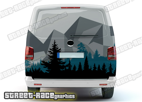 Volkswagen VW Transporter extra large printed Mountain side and rear sticker kit. We can make these graphics to suit all Volkswagen Transporters.