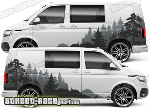 Volkswagen VW Transporter extra large printed Mountain side and rear sticker kit. We can make these graphics to suit all Volkswagen Transporters.