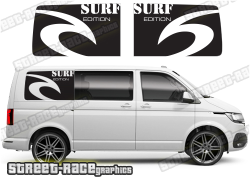 Volkswagen VW Transporter upper rear side panel sticker. The design is pre-cut to fit the shape of the panel recess, and will only fit the T5 and T6 versions and facelift variants.