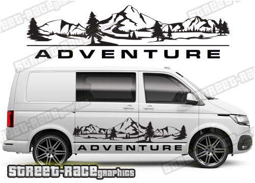 • 2 x large MOUNTAIN / ADVENTURE style VW Transporter decals (one for each side of the van).