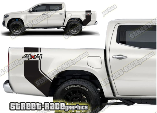 Mercedes X250D & X350D ‘4×4’ side racing stripe bed / tub band graphics. This graphics kit will fit all versions of the Isuzu D-Max.