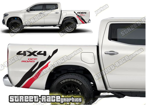 Mercedes X250D & X350D ‘4×4’ side racing stripe bed / tub band graphics. This graphics kit will fit all versions of the Isuzu D-Max.