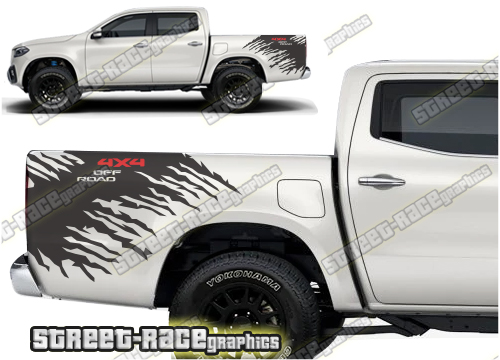 Mercedes X250D & X350D ‘4×4’ side racing stripe bed / tub graphics. This graphics kit will fit all versions of the Isuzu D-Max.