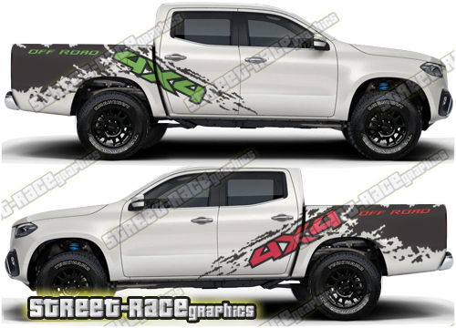 Mercedes X250D / X350D large ‘4×4 OFF ROAD’ side ripped grunge style graphics. These decals will fit all Mercedes X250D / X350D trucks.