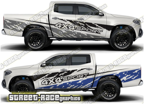 Mercedes X250D / X350D large side 4X4 SPORT mud splatter effect rally style graphics. These decals will fit all Mercedes X250D / X350D trucks.
