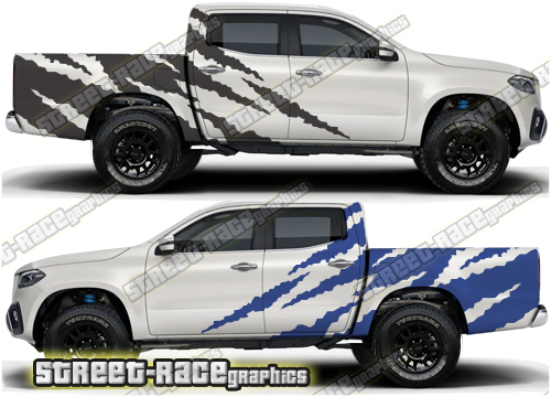 Mercedes X250D / X350D large side ripped shredded effect rally style graphics.