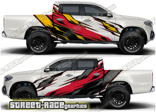 Mercedes X250D / X350Dlarge printed diagonal side stripe graphics. These decals will fit all Mercedes X250D / X350D trucks.