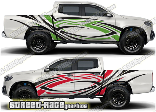 Mercedes X250D / X350D large side rally style graphics. These decals will fit all Mercedes X250D / X350D trucks.