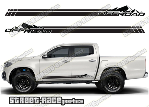 Mercedes X250D / X350D side racing stripes stickers with a mountain / off-road 4×4 theme.